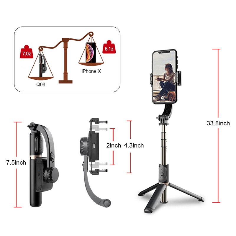 - 📸 [Diseño plegable liviano y portátil]: El palo selfie estabilizador movil portátil pesa solo 230 gramos y solo mide 190 mm cuando está doblado. Es conveniente llevarlo en un bolsillo o bolso cuando se viaja. Aunque este trípode gimbal iphone es liviano y pequeño, puede soportar mucho El peso de la mayoría de los modelos de teléfonos móviles es adecuado para la mayoría de los dispositivos iOS y Android de 3,5 a 6 pulgadas, y no es necesario descargar aplicaciones adicionales.