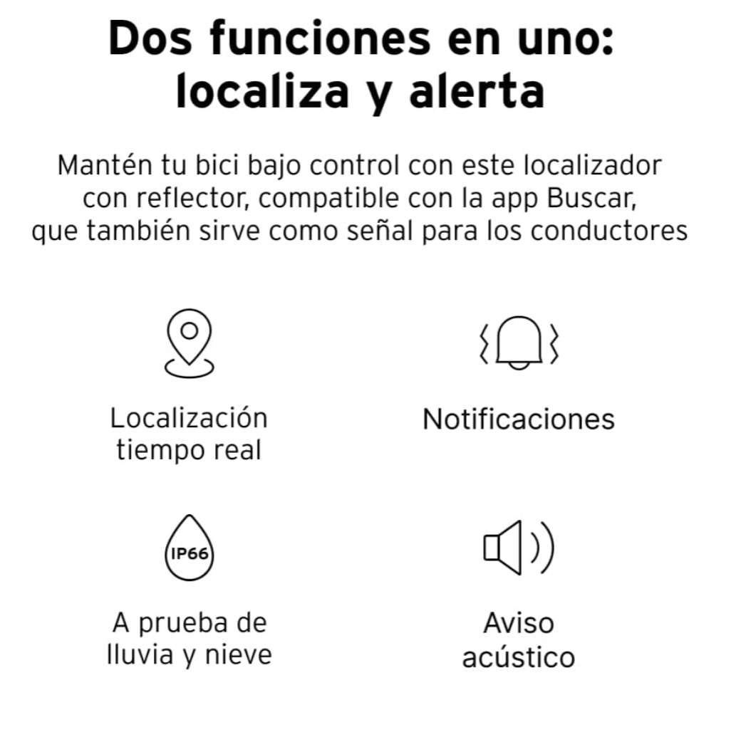 El localizador reflector para bicis de HEAD es perfecto para no volver a perder tu bicicleta nunca más. Gracias a él, puedes tener tu bici siempre localizada en caso de perderla de vista. El localizador es ultrafino y ligero, cuenta con una carcasa reflectante que además de alojar el localizador, te servirá como medio de indicador reflectante cuando vas pedaleando por carretera o ciudad. El localizador incluye una abrazadera para sujetarlo al cuadro de tu bici. Es compatible con dispositivos Apple y se controla mediante la aplicación Buscar.