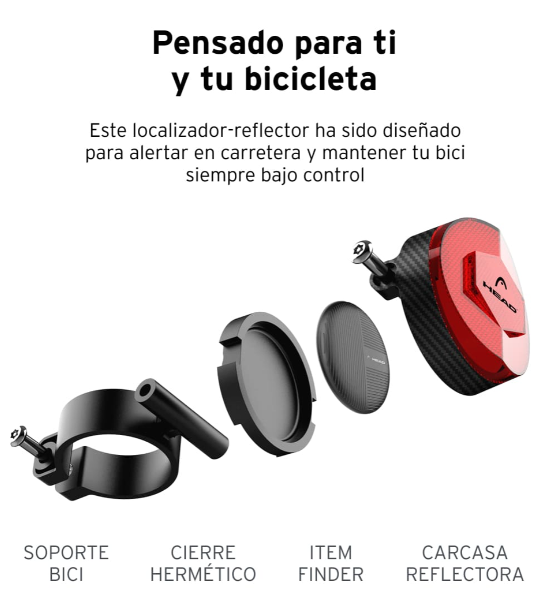 Localizador reflector para bicicletas HEAD, Compatible con Apple, Altavoz integrado, IP66, Negro